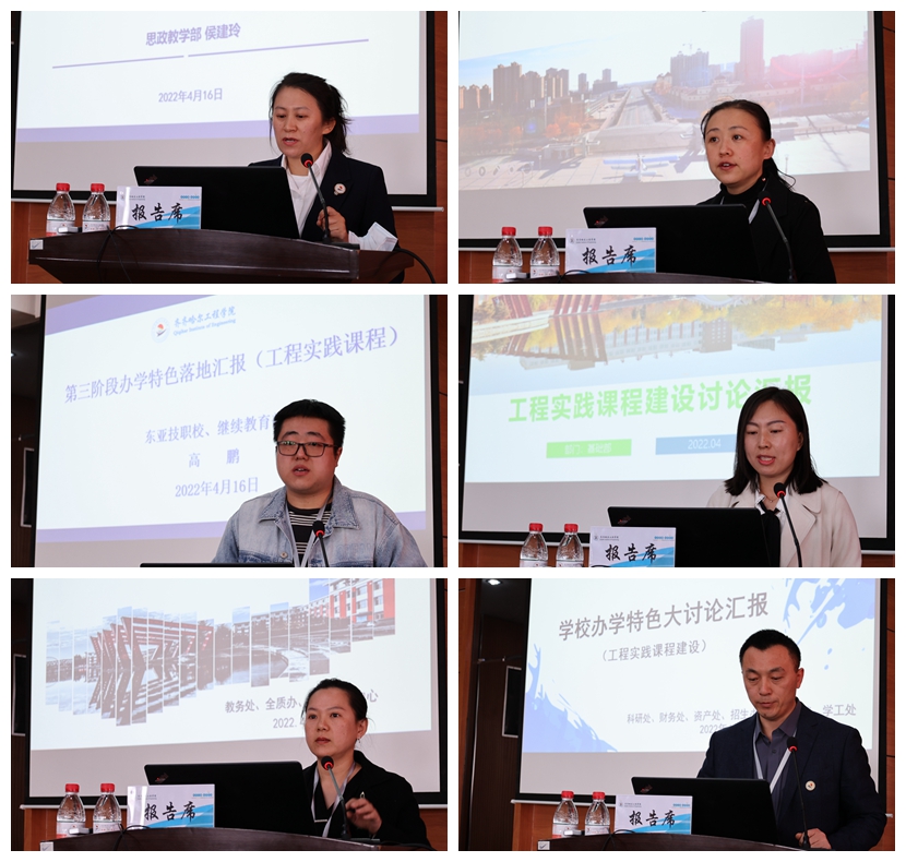各系主要围绕《应用型课程建设指南》开发第三学期工程实践课程和如何通过第三学期体现学校办学特色和专业特色进行汇报;职能部门主要针对“三·三”办学特色如何在第三学期落地、基于部门职能如何为工程实践提供服务以及在第20个第三学期,计划开展哪些特色活动,产生哪些教育成果方面进行阐述。各代表对工程实践课程建设认真总结,积极建言献策,形成一种齐放争鸣的态势。