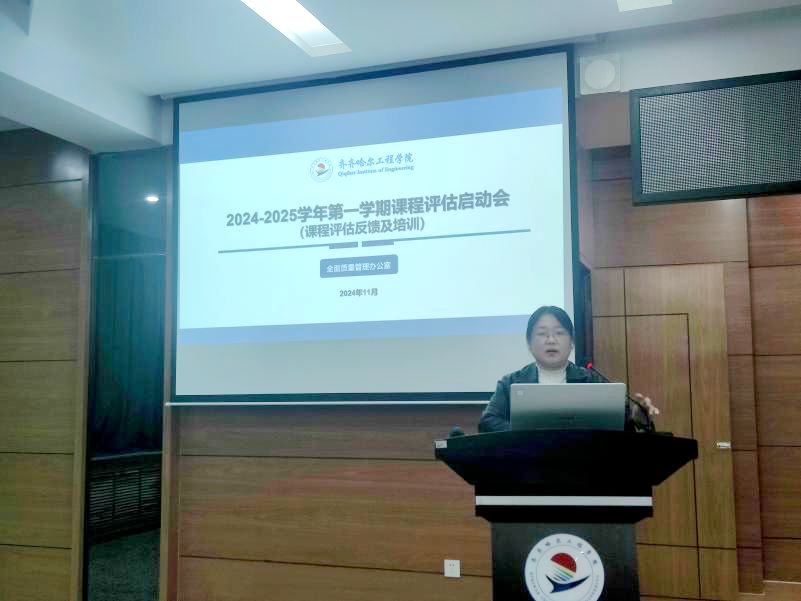 为做好2024-2025学年第一学期课程评估工作,11月27日下午,全面质量管理办公室在图书馆601报告厅组织召开本学期课程评估启动会,会议内容为2023-2024学年第二学期课程评估反馈及2024-2025学年第一学期课程评估工作培训。副院长张静出席会议,本学期课程评估评委、各开课单位主管教学领导以及本学期参评课程的课程负责人参加。会议由全面质量管理办公室副主任孟艳辉主持。