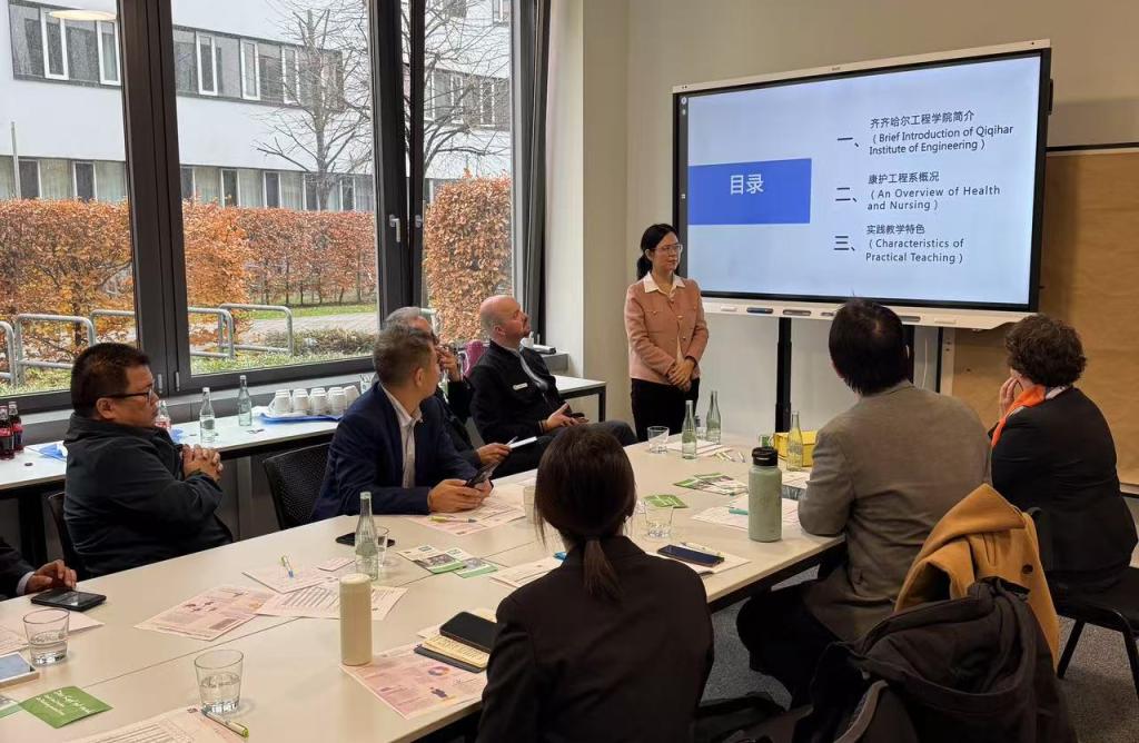 11月25日,考察团成员抵达德国海尔布隆应用技术大学,该校Alex教授与考察团成员围绕数字化转型与未来人才能力模型和德国应用科学大学专业设置、培养模式与发展趋势等内容开展了深入的研讨。研讨会上,永利康护工程系主任郭玲玲向德方专家介绍了“四真三化”(FT)课程建设原理与方法, Alex教授表示十分赞赏,双方就如何构建课程质量保障体系等问题进行了深入探讨。