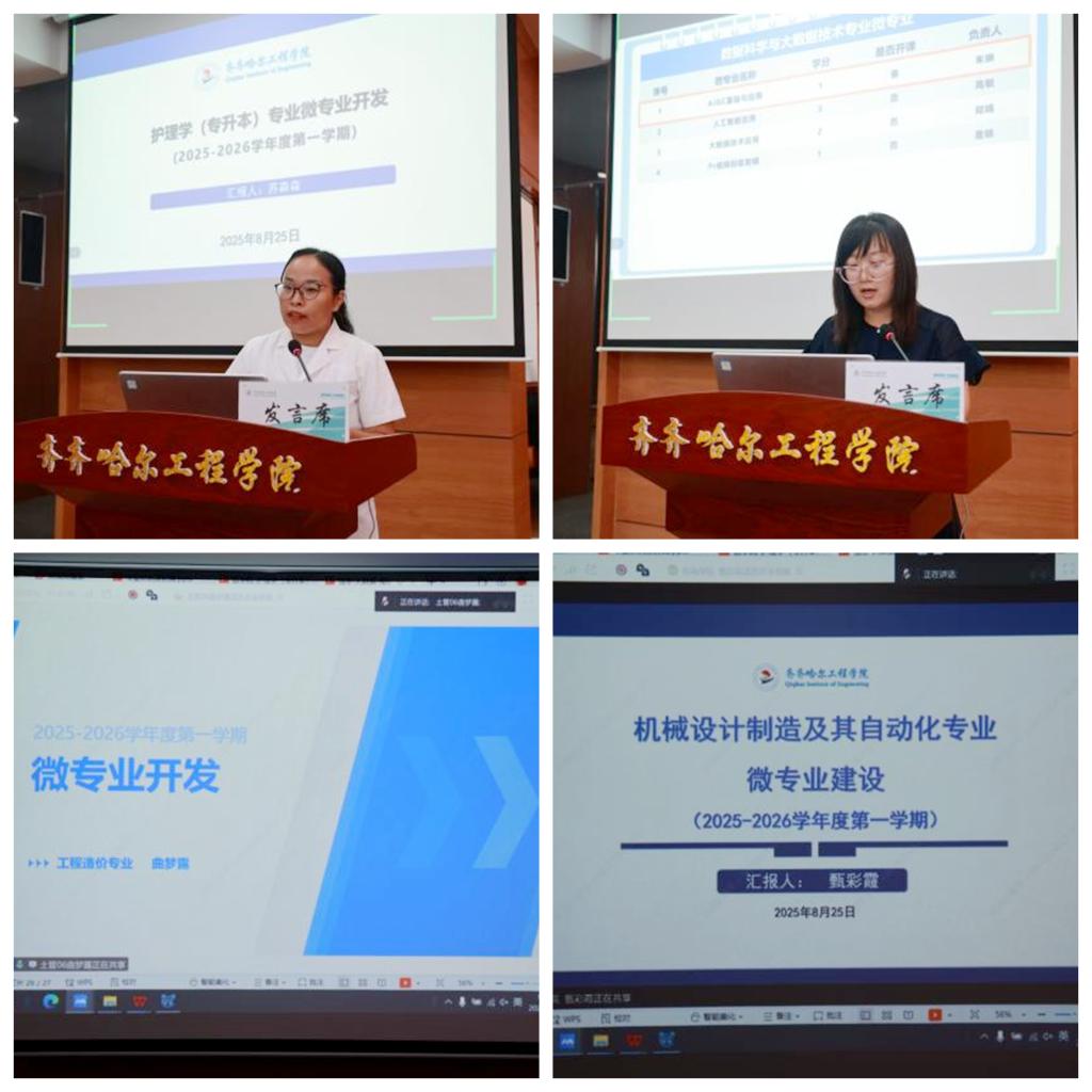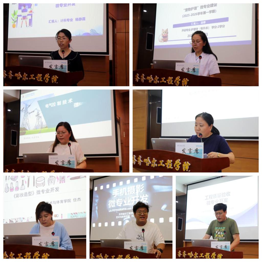为全面促进专业建设,扩大就业选择,提升就业质量,学校正积极推进微专业的开发和管理工作,8月25日至27日,学校在图书馆601报告厅开展2025-2026学年第学期专业负责人及教师开课资格审查活动。此次审查活动主要围绕微专业的管理与开发进行,采用线上线下相结合的方式开展。理事长曹勇安教授任特约评委,副长张静教师发展中心主任潘宇、教务处处长李文禹、学院院长教学副院长担任评委。校领导及全校教职工参会。