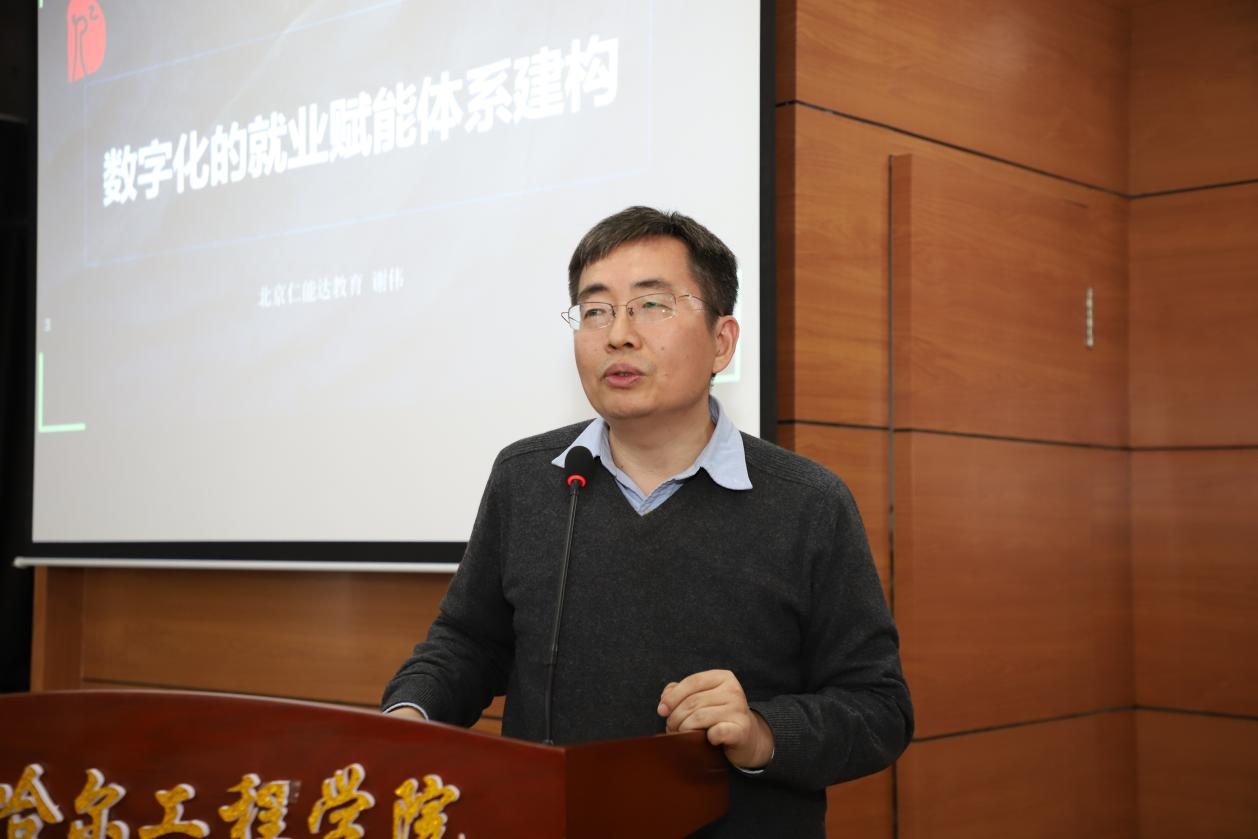 北京仁能达生涯教育研究院院长谢伟作《数字化的就业赋能体系建构》讲座,他以金字塔图型说明著名专家的双因素理论,即:激励因素、保健因素,用大量数据、表格、图型说明生涯引导、优秀毕业生胜任力、职业成熟度各维度表现、就业力诊断分流的过程等数字化测评结果,以多维的视角展现高校人才培养的改进与成果。