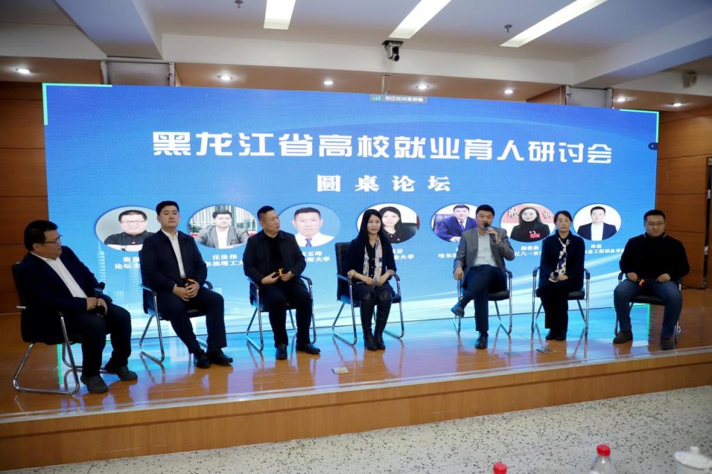 在圆桌论坛环节中,由校党委副书记张振笋主持,哈尔滨理工大学大学生就业服务中心主任任佳伟、佳木斯大学招生就业处处长张玉锋、东北农业大学招生就业处处长宋跃芬、哈尔滨石油学院副院长冯研、黑龙江八一农垦大学招生就业处处长杨艳秋、黑龙江农业工程职业学院招生就业处副处长孙健七位专家围绕就业育人、课程思政、生涯导师、学生职业规划展开研讨。针对就业育人工作痛点、难点,专家们根据自身工作环境,各抒己见,从不同角度给出建议,分享个人经验体会,并与台下嘉宾积极互动,现场气氛十分热烈。