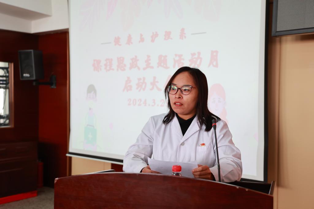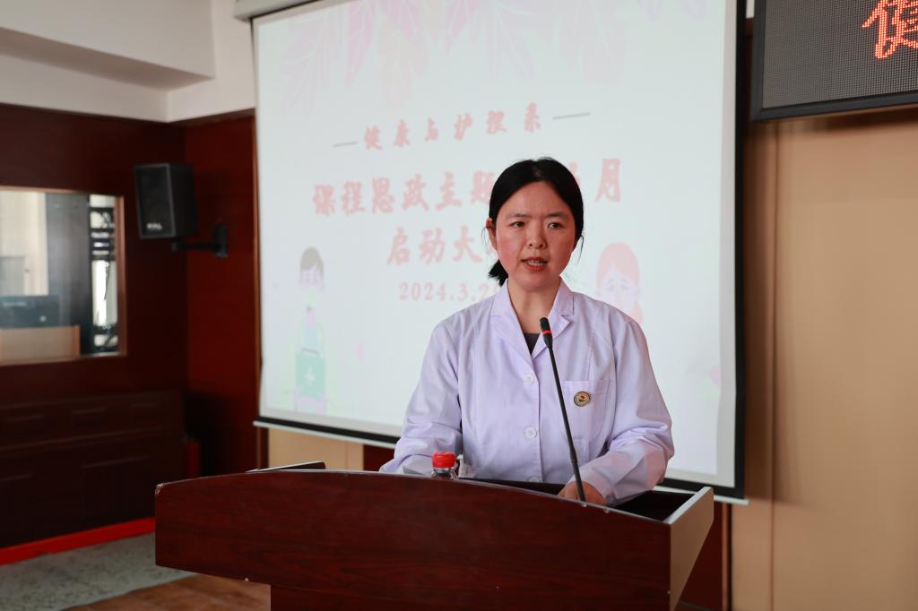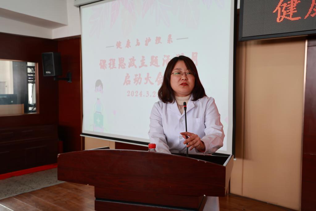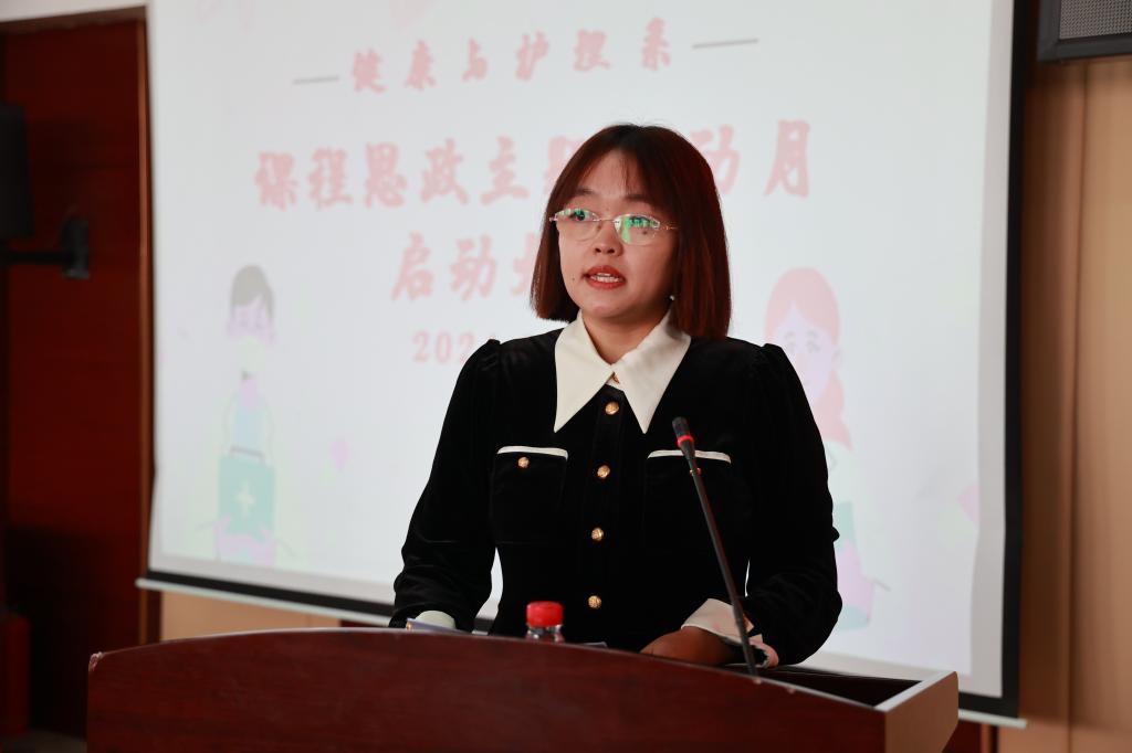 随后,郭玲玲宣读《健康与护理系“课程思政主题活动月”实施方案》,就活动目标、活动内容与相关要求进行说明。