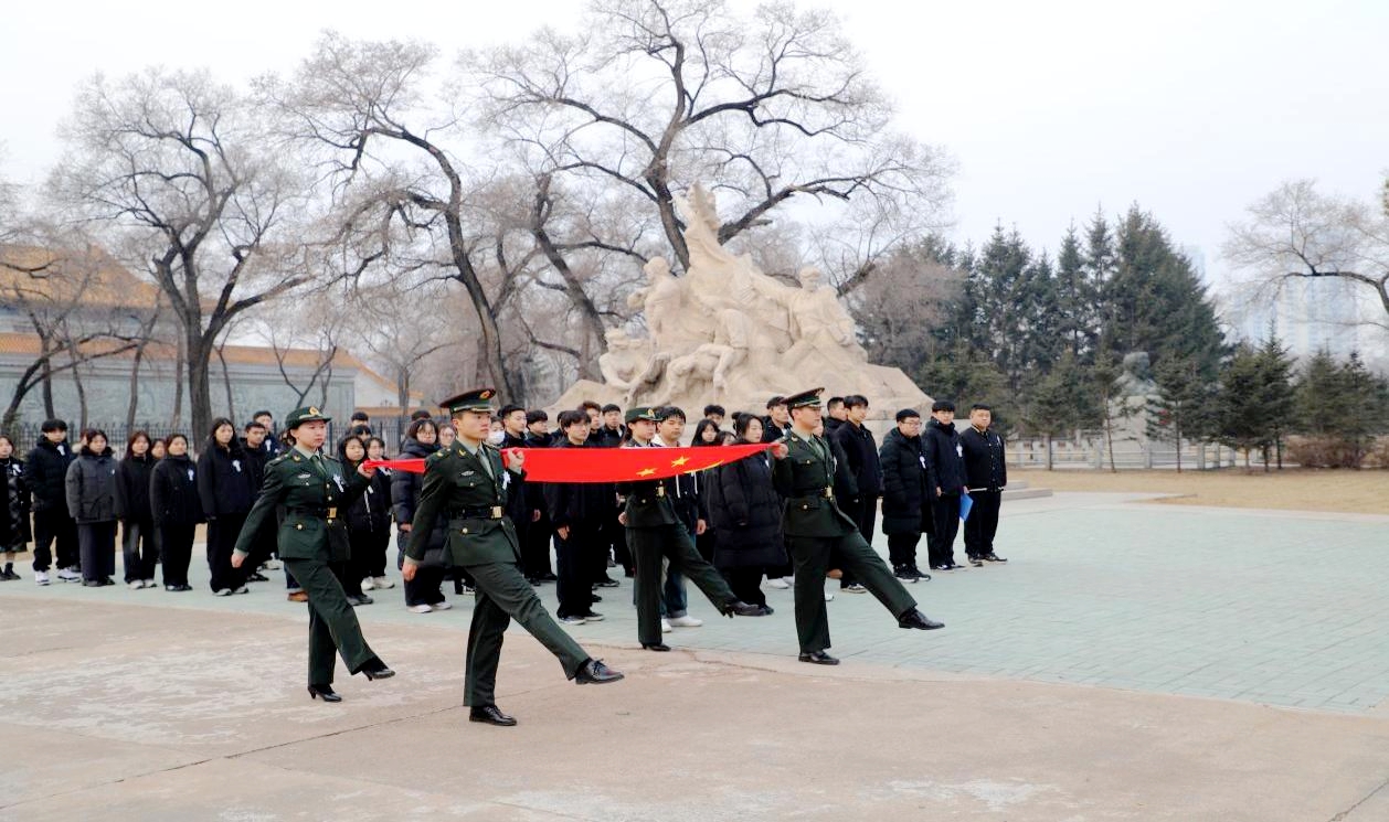 教官团向革命先烈敬献花圈,全体师生行三鞠躬礼,表达对英烈的缅怀和崇敬之情。