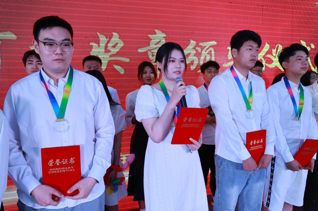 机电工程系肖淞元同学作为丁香奖章获得者代表,发表获奖感言。她分享了自己参加各类创新创业比赛的故事,感谢学校和老师们在她创新之路上给予的支持与肯定。并表示,在未来的日子里,将继续努力,用坚定的信仰、信念、信心影响更多的人,以自己的实际行动带动更多的同学,为营造浓厚的丁香校园氛围发挥积极带头作用。