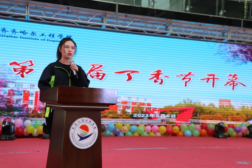 团委李红老师宣读《关于开展第五届丁香节活动的通知》,第五届丁香节历时一个月,将通过开展“唱丁香”“画丁香”“舞丁香”“寻找丁香学子”等系列活动,倡导丁香精神,培养丁香品质。