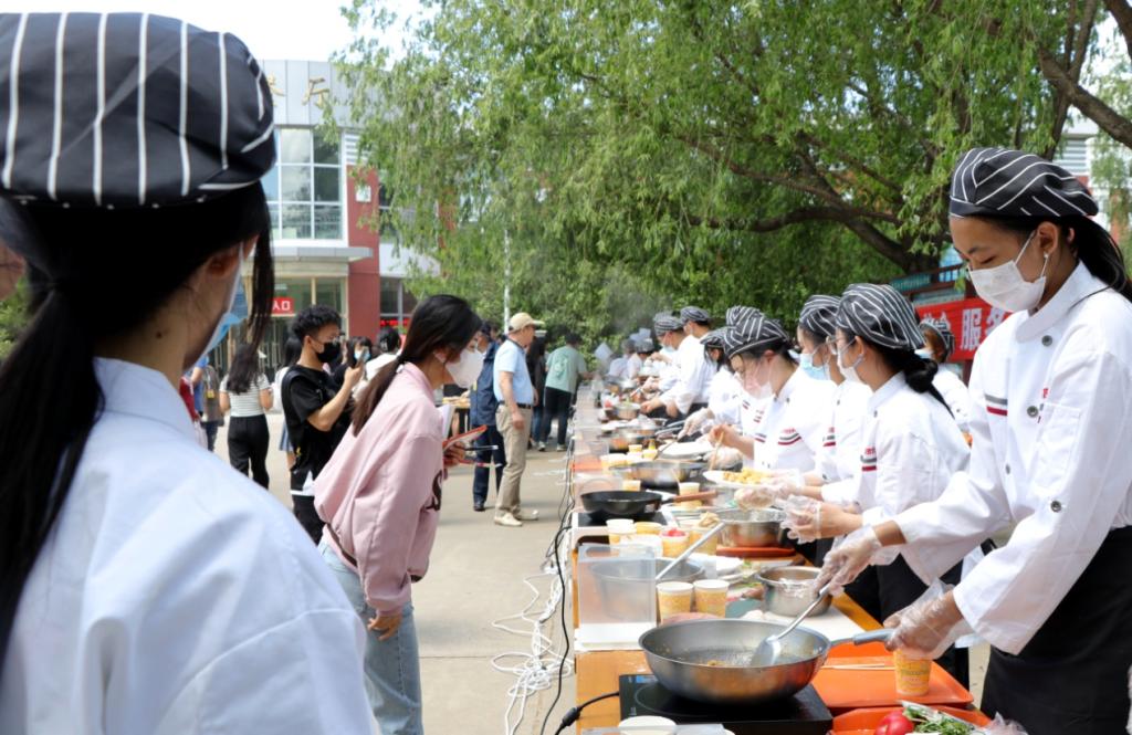 比赛中,食堂团队烟火气浓郁,菜品色、香、味俱全,摆盘精致,匠人师傅们烹制的菜品“最东北,很鲜香”;学生团队将课堂所学进行展示,一道道菜品或成功或稚嫩,完美地将认真学习、追求完美、充分自信融入其中。