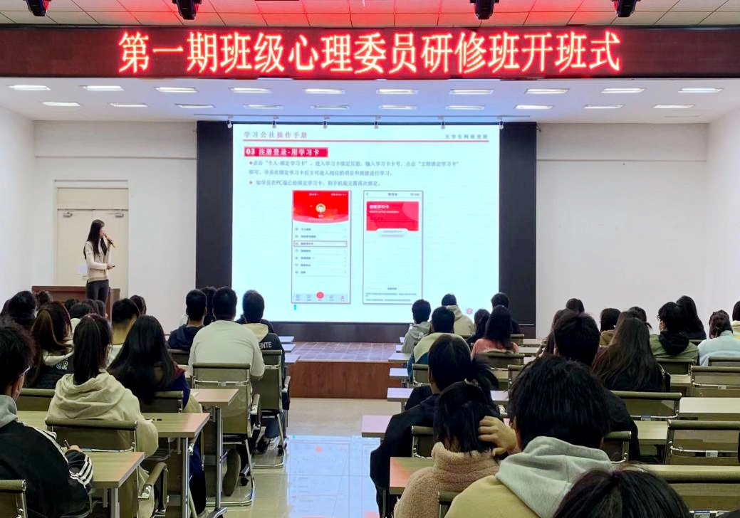 学生发展中心心理教师周倍娴为各班心理委员讲解培训平台的操作流程,并现场进行了演示,解答了相关问题,对近期心理健康教育活动进行了部署。