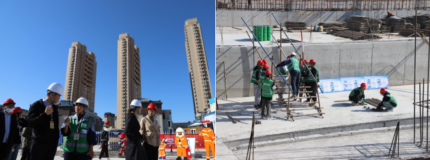 在建筑工程系教师的引领下,骨干学习班全体干部、教师有序地进行参观和学习。建筑工程系土木专升本222班徐昌钰同学为各位领导和老师结合校外课堂的实施情况进行介绍和讲解。校园北区建设项目分别包括中国能源建设集团东北电力第二工程有限公司负责的体育馆综合体;中建二局第四建筑工程有限公司负责的人民会堂、学生公寓A、学生公寓B。此项目是在永利与中建、中能集团的共同努力下打造的全国唯一教科研型工地示范区。目前,项目正在申报全省安全文明标准化工地及本省建筑最高奖项“龙江杯”和省级结构优质奖。