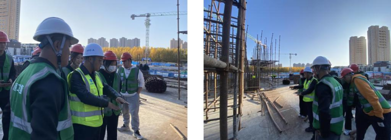 在施工现场中,理事长曹勇安的到来受到建筑工程系师生的热烈欢迎,理事长对学生们悉心教导并强调学校“旺工淡学”教学特色,向同学们再次强调现在在学校的学习方式与明天在社会上的生存方式应保持一致,希望同学们应该借助此次校外课堂实践机会,充分锻炼自己的实践技能,丰富简历的实习经历,提高自身在建筑行业中的竞争优势。