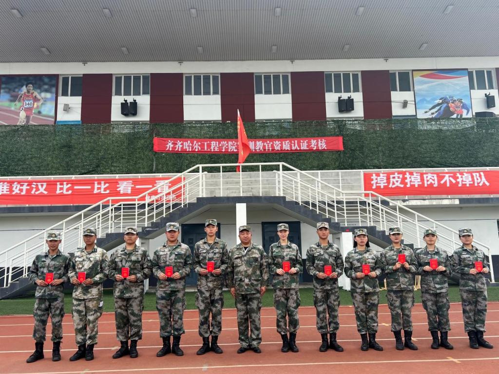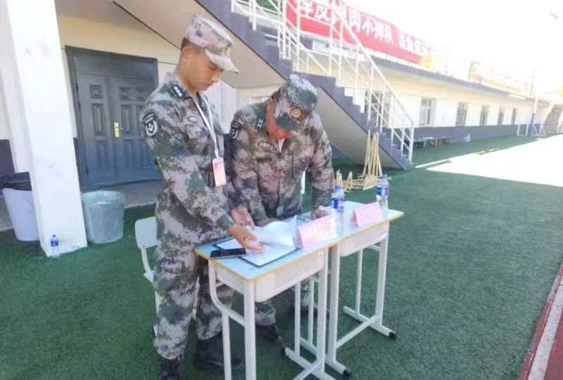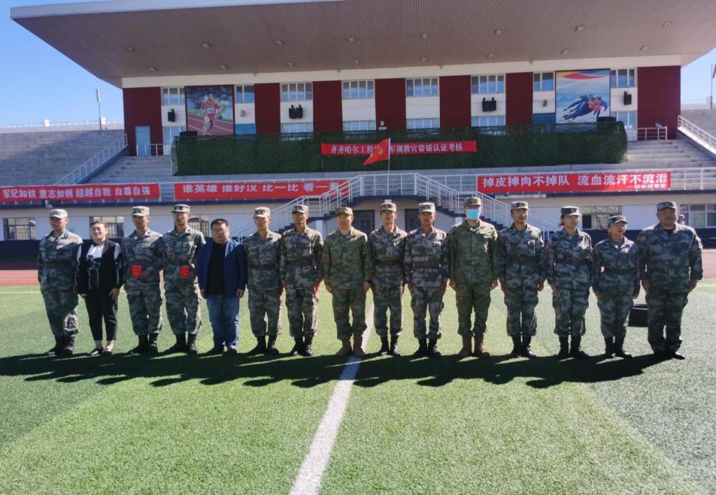 为提升学生军训教官的军政素质,提高军训教学水平,确保2022级新生军训顺利进行,8月26日,学校武装部在体育场开展军训教官资质认证考核工作。齐齐哈尔市龙沙区武装部部长庞永、军事科长郭涛应邀出席考核现场,学校副院长张振笋、学生工作处副处长郭明敬参加考核工作。