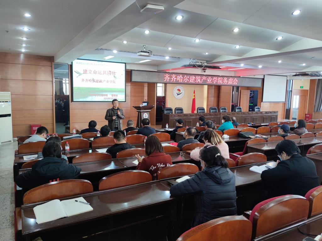 3月30日,在图书馆601召开齐齐哈尔建筑产业学院建设推进会暨学校北区建设开发务虚会,曹勇安理事长、曹然彬院长、合作企业代表出席会议,建筑工程系全体教师及骨干学生代表参加。