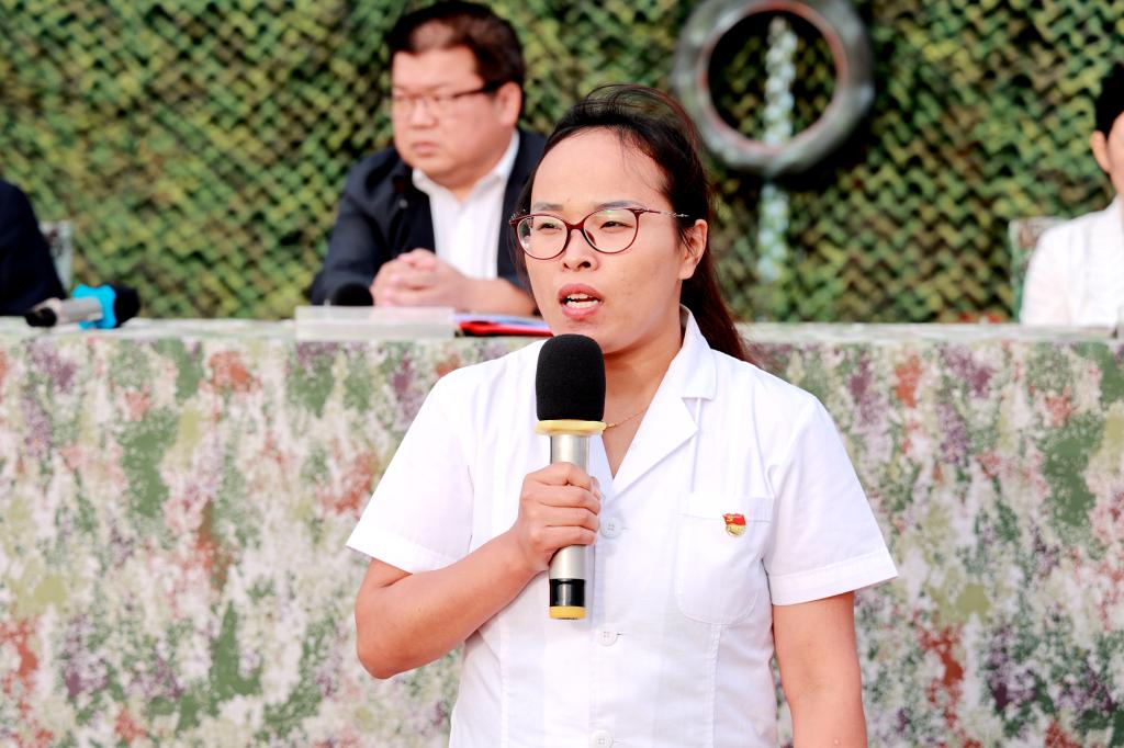 新生军训临时党支部书记、建筑工程系土木专升本233班吴国榕发言,他分享了军训给个人和团队带来的感受,体会了齐工程不一样的学校文化,表示将珍惜来之不易的学习机会,传承亮剑精神,在另一个战场上争做标兵。