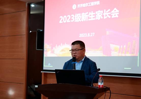 校党委副书记张振笋以《家校共育 助TA成长》为题,给家长们提出了中肯的建议,以达到家校共育,助力学生成长成材的目的。他从细节处入手,强调了家长与学校对学生入学、假期、毕业前的时间节点上要注意的事项,并强调家校各种联系要畅通;鼓励学生积极参加学校举办的各种有益活动。最后,与家长现场建立了微信群。