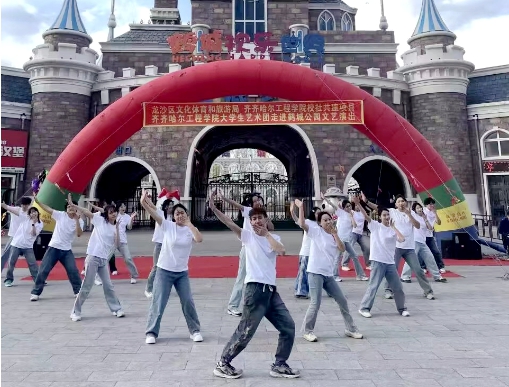 4月27日,学校联合龙沙区文体旅游局共同举办了“青春风采、魅力无限、文化传承、欢度五一”文艺展演活动,学校大学生艺术团、体育社团联袂走进国家AAAA级景区——齐齐哈尔鹤城公园,为市民带来一场精彩纷呈的文艺演出和全民健身理念宣讲,为区域文化建设释放光和热。