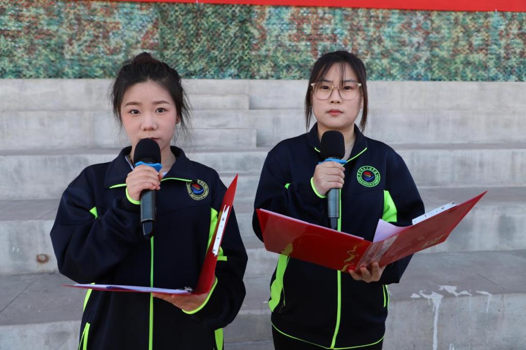 计科231班宋喜悦、护理学234班李佳诗朗诵《青春中国》,在国旗下庄重承诺。他们齐声朗诵:作为新时代中国青年要无比珍惜时代赋予的机会,要承担起当代大学生的责任,要敢想,敢为、敢于担当,让青春在新时代的广阔天地中绽放,在实现中国梦的奋进中展现出一往无前、奋力奔跑的英姿。