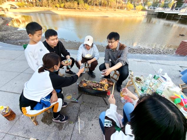 座谈会结束后,学生参加了“劳动润心、实践育人”校园烧烤活动。大家分工合作,共同完成了烧烤前准备工作。在欢乐的氛围中,大家享受着美食,交流着心得,增进了彼此间的友谊。