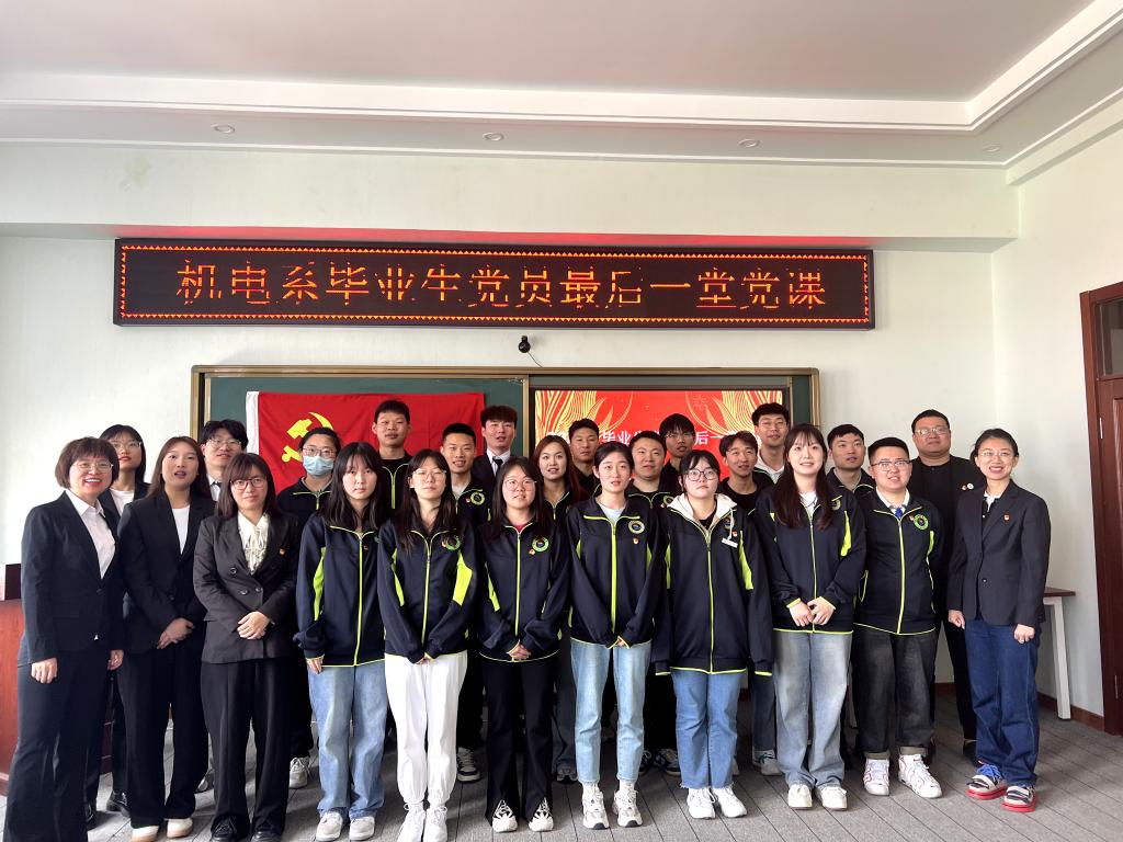 为毕业生党员上最后一次党课,是机电工程系党总支工作的重要内容。毕业生党员再一次接受党性教育,是一次锤炼党性、凝心铸魂的思想政治洗礼,进一步坚定了毕业生党员的理想信念和宗旨意识。希望2024届毕业生党员牢记母校嘱托,担当青年使命,以昂扬姿态踏上人生的新征程,以奋进青春建功新时代,以实际行动为母校增光、为党旗添彩,让青春在全面建设社会主义现代化国家的火热实践中绽放绚丽之花。