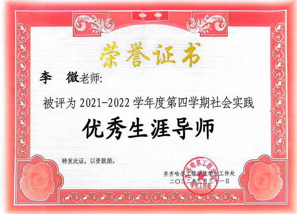 自从担任生涯导师以来,李微始终关注学生的全面发展和长远规划。她深知每个学生都拥有独特的潜能和兴趣,因此致力于通过个性化的指导和支持,帮助学生发现自我、认识自我,并制定出符合学生兴趣的生涯规划。在指导过程中,她注重培养学生的自我认知能力、决策能力和行动力,鼓励学生主动探索、积极尝试,通过实习、志愿服务等活动积累实践经验,为未来职业发展奠定坚实基础。她从学生大一入学开始引导学生制定未来职业规划,根据规划反向制定学习计划。同时,还为学生提供丰富的职业信息和资源,帮助他们了解不同行业的发展趋势和就业前景,从而作出更加明智的职业选择。她指导的学生在专业实践学期和社会实践学期多次荣获表扬信和各项荣誉。