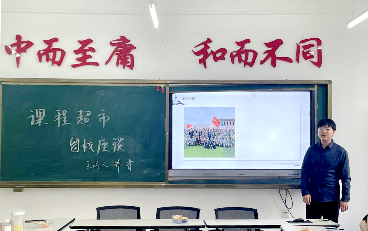 5月31日,土木202班杜洋同学为参加课程超市的学弟学妹们分享自己考取齐齐哈尔大学研究生的成功经验,杜洋结合自身学习心得,从考研资料的选择、学习方法的优化、心态调整的技巧三方面进行介绍。并与学弟学妹就行现场交流,回答提问。杜洋表示,在考研备考的道路上,只有坚定信念就一定会战胜困难,取得好成绩。