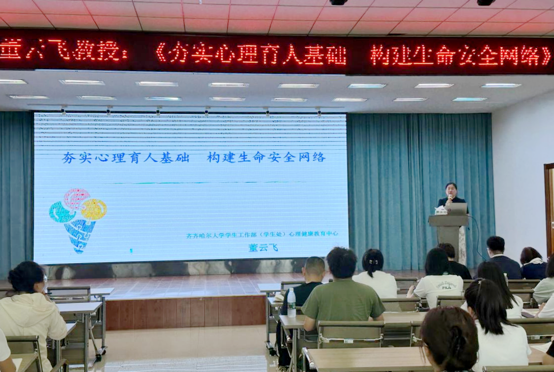 董云飞以《夯实心理育人基础 构建生命安全网络》为题进行专题培训。董云飞结合丰富的实践经验,深入浅出地讲解了高校心理健康教育的重要性,并通过案例分析、情景再现等方式,让教师们深刻认识到心理健康教育在学生全面发展中的重要作用。提出教师要体悟、洞察、把握学生心理,发挥自身特长,善于沟通交流,通过科学的方法挖掘学生积极向上的心理品质,做学生心灵的抚慰者。讲座内容丰富,现场气氛活跃,得到了教师们的一致好评。