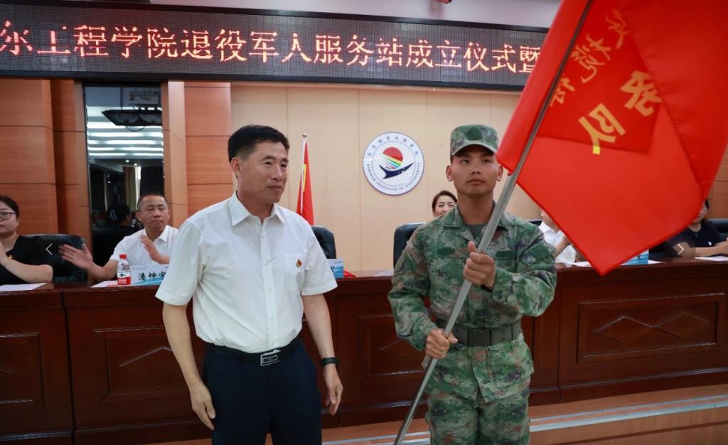 市退役军人事务局党组书记、局长吴寒为永利23411集团官网退役军人服务站授牌,市退役军人事务局党组成员、副局长杨军为“橄榄绿”志愿服务队授旗。