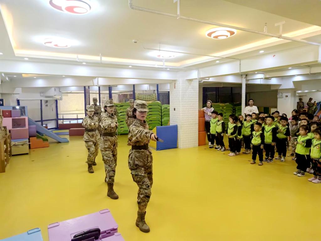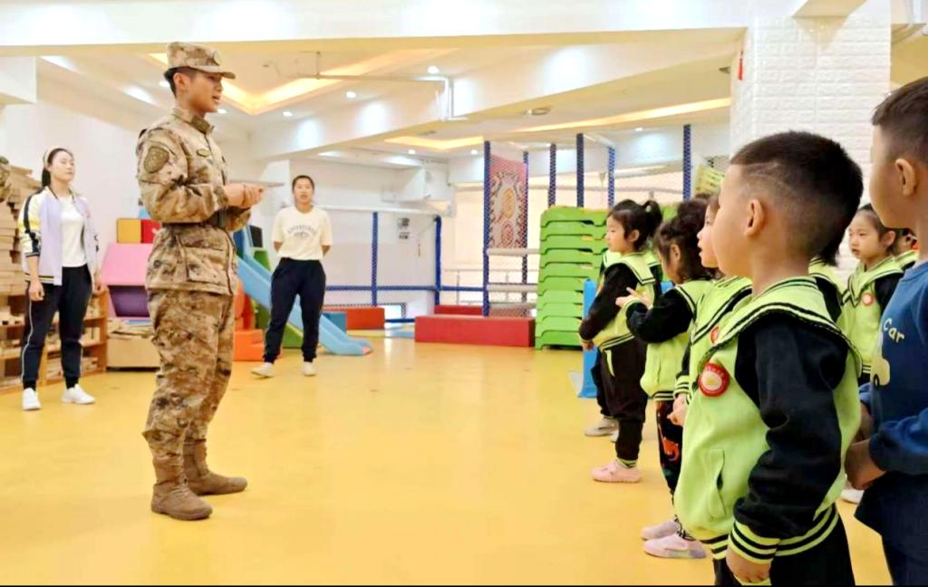 为进一步弘扬爱国主义精神,普及国防教育知识,培养幼儿勇敢、自信、坚持、不怕困难等良好的精神品质,11月12日上午,学校八名学长教官赴齐齐哈尔市龙沙区新城宝贝第二幼儿园开展“国防教育进校园”活动。
