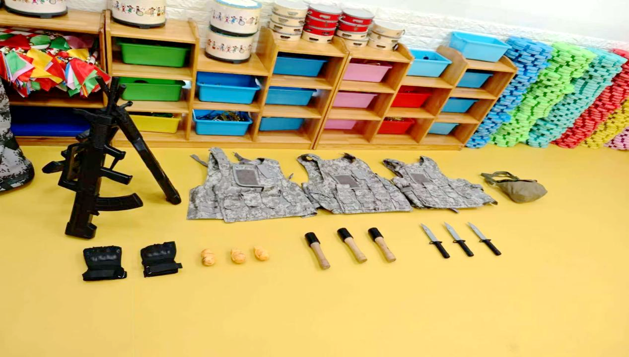 随后,学长教官通过展示步枪、手枪等模型,向小朋友介绍了比较有代表性的军事器械,并详细讲解了它们的用途和使用方法。小朋友纷纷上前围观,对国防知识有了更加直观的认识。