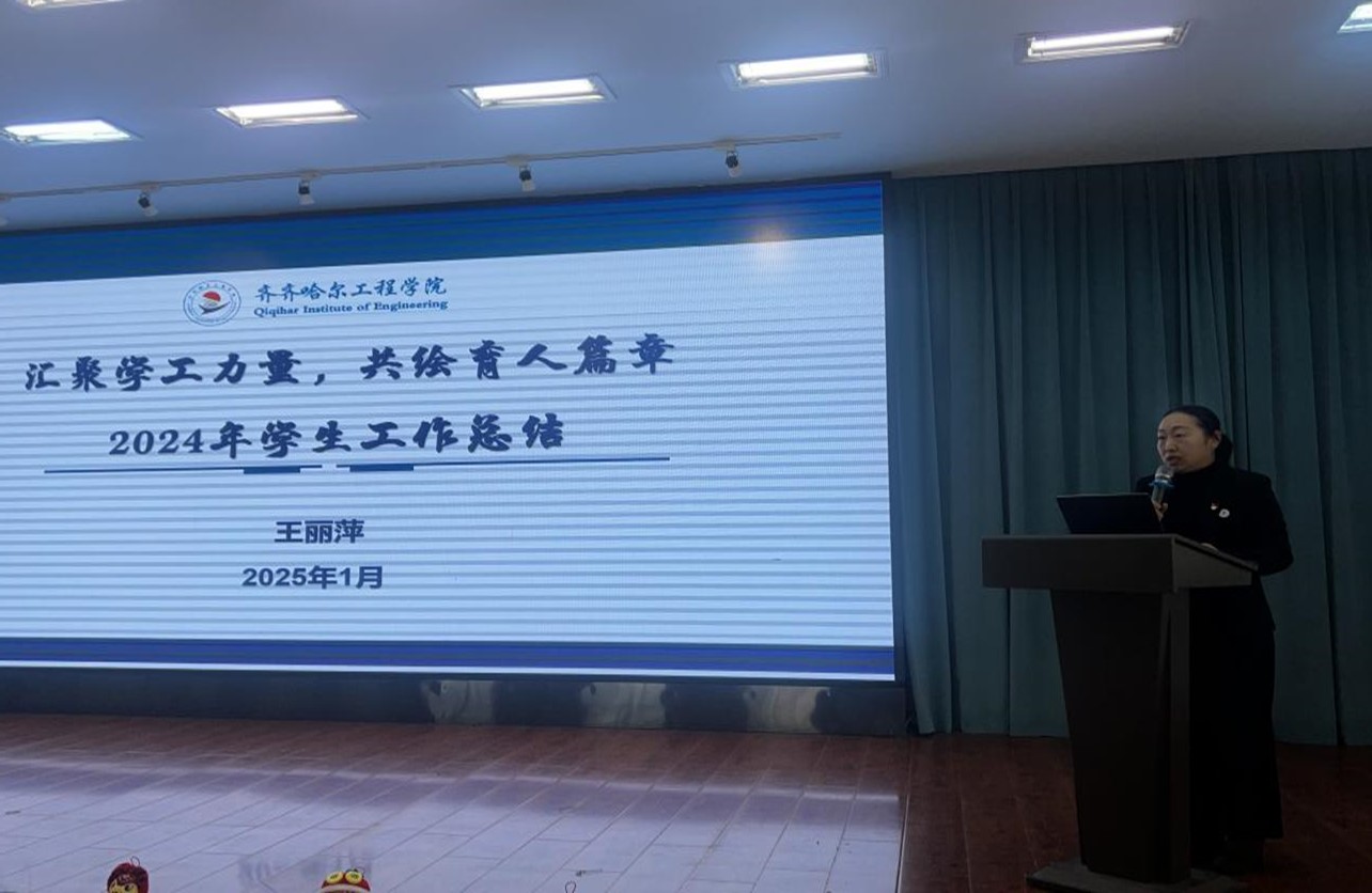 王丽萍对2024年学生工作进行了总结,指出2025年学生工作方向,表示将2025年作为学工队伍“能力建设提升年”,打造“有特色、有深度、有温度”的优质活动,促进教风和学风建设,为建设“百年老校”发展贡献力量。