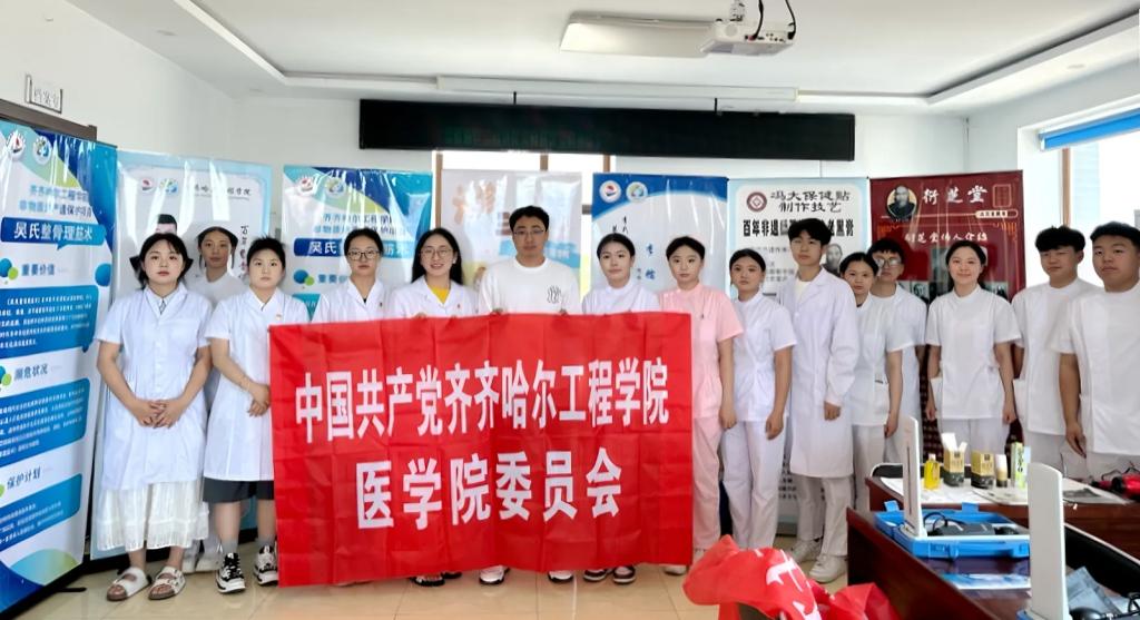 为深入贯彻服务基层、振兴乡村的精神,永利23411集团官网医学院学生党支部联合齐齐哈尔市昂昂溪区水师营满族镇衙门满族村党支部,开展了主题为“以护为炬•照亮乡村健康路”暑期“三下乡”社会实践活动。医学院党委副书记姜宏伟、团委书记邱瀚宁、学生党支部书记江丽娜以及医学院师生党员和“三下乡”实践团队成员20余人参加。