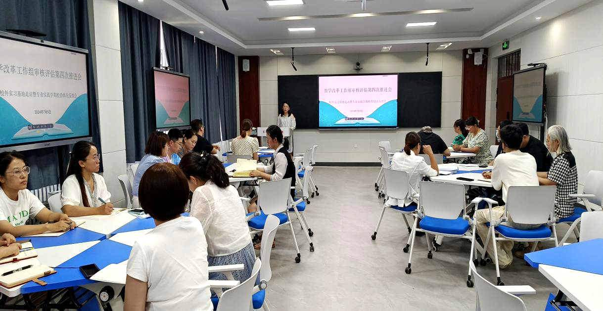 为进一步推进学校教育教学审核评估工作,加强专业实践学期教学管理,提高专业实践学期教学质量,7月5日下午,教务处在智慧教室414室组织召开教学改革工作组审核评估第四次推进会,副院长张静,党委宣传统战部负责人张苗,全面质量管理办公室副主任孟艳辉,教务处、各系干部及专业长参加。会议由教务处副处长郝丽娜主持。