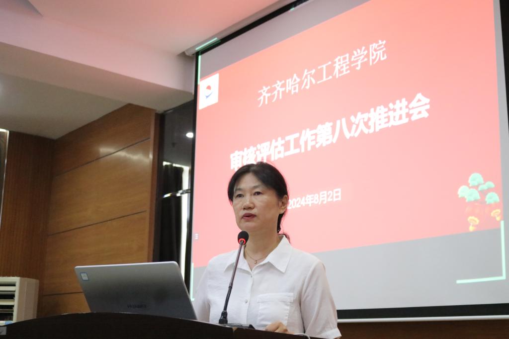8月2日上午,学校在图书馆601报告厅召开审核评估工作第八次推进会。院长曹然彬、党委书记郭伟东、常务副院长陈景鑫、副院长张静、评建办主任蒋春艳以及各部门、各工作组负责人和评建办全体人员参会。