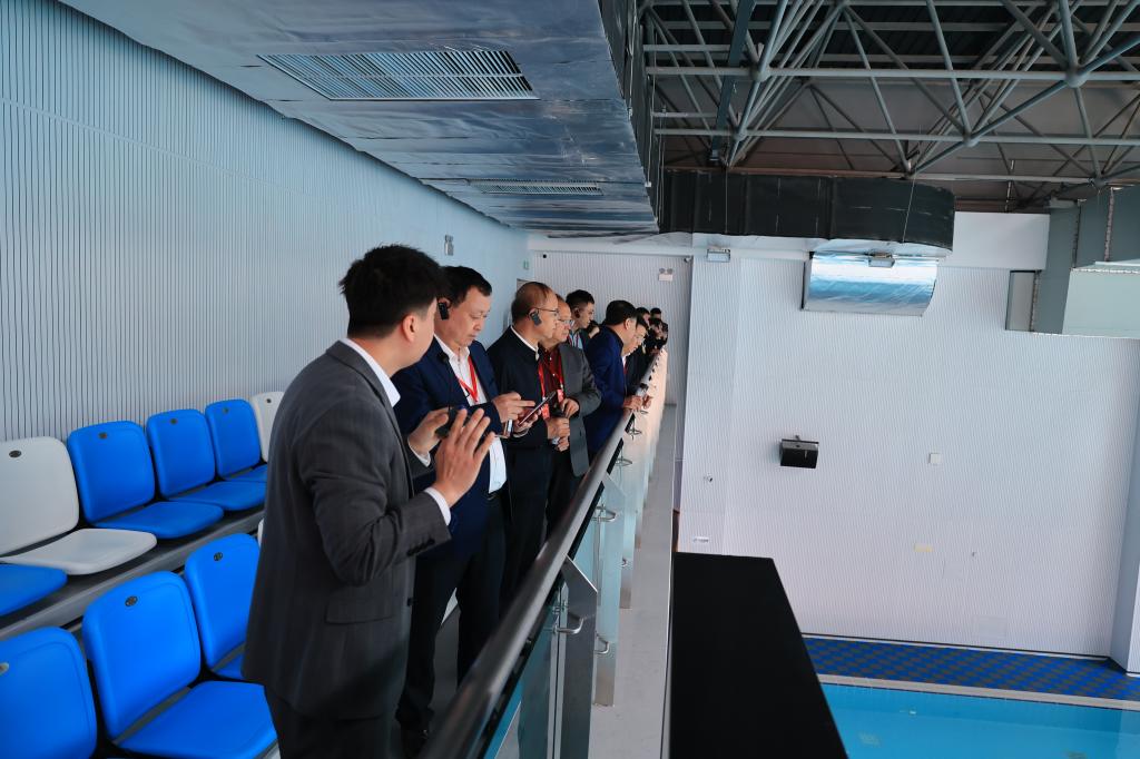 专家组一行深入齐三机床厂、新能源汽车实训中心、创业学院、冰上运动馆、体育馆、游泳馆、齐工健康服务有限责任公司、人民会堂等场所实地考察,进一步了解永利产教融合、校企合作、创新创业教育、课程建设、微专业开设、服务社会等方面相关情况。