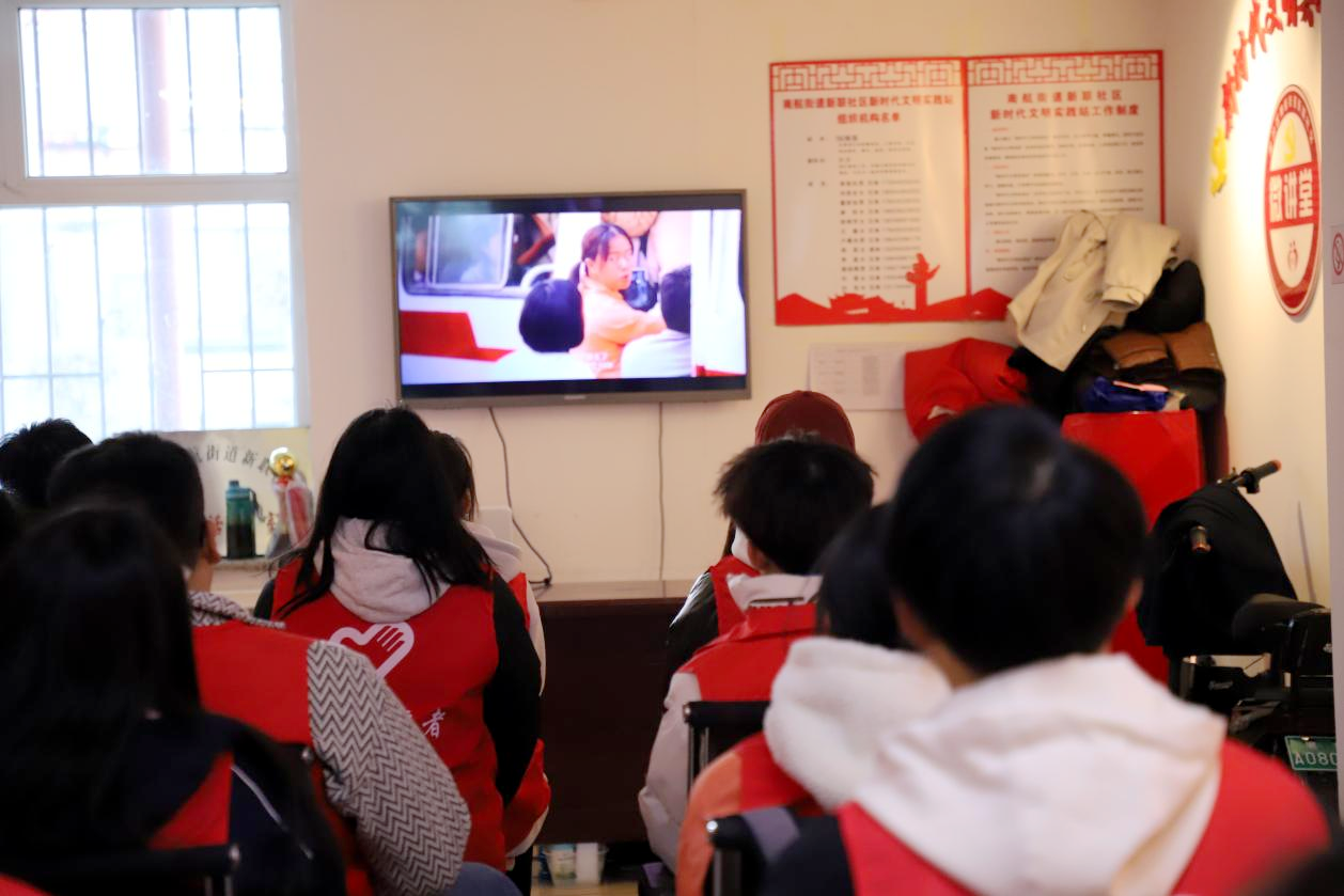 社区工作人员还为在场志愿者播放了电影《你好,李焕英》,向志愿者传达无论时代如何变迁,母爱的伟大和家庭的温暖永远不会过时。