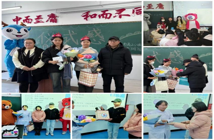 学生工作处负责人王丽萍,生涯导师魏军等还为3月7日过生日的女生组织一次移动式的生日会,教师为寿星戴上了生日帽,并送上了精美的礼物和美好祝福。