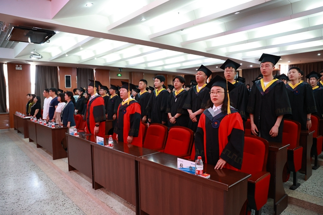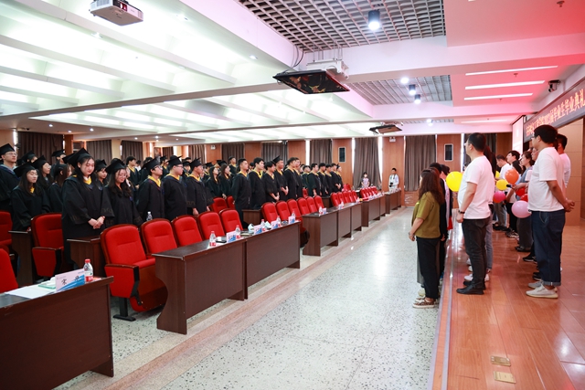 在雄壮的国歌声中,毕业典礼正式开始。