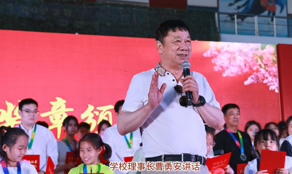 曹勇安理事长代表学校党政领导班子,向2023届毕业生表达祝贺和祝福,今年毕业晚会以“当丁香花遇见童谣”为主题,且选择在“六一”儿童节,寓意深远,希望同学们永远保持童心。曹理事长强调母亲给予自然生命,母校赋能价值生命,学校秉持“以学生为中心”教育理念,以课立校,以课改促学生成长。“今天的校园文化就是明天的社会风气”,希望广大毕业生秉承母校创业精神,以自我成长践行“明日母校以我为荣”的誓言。