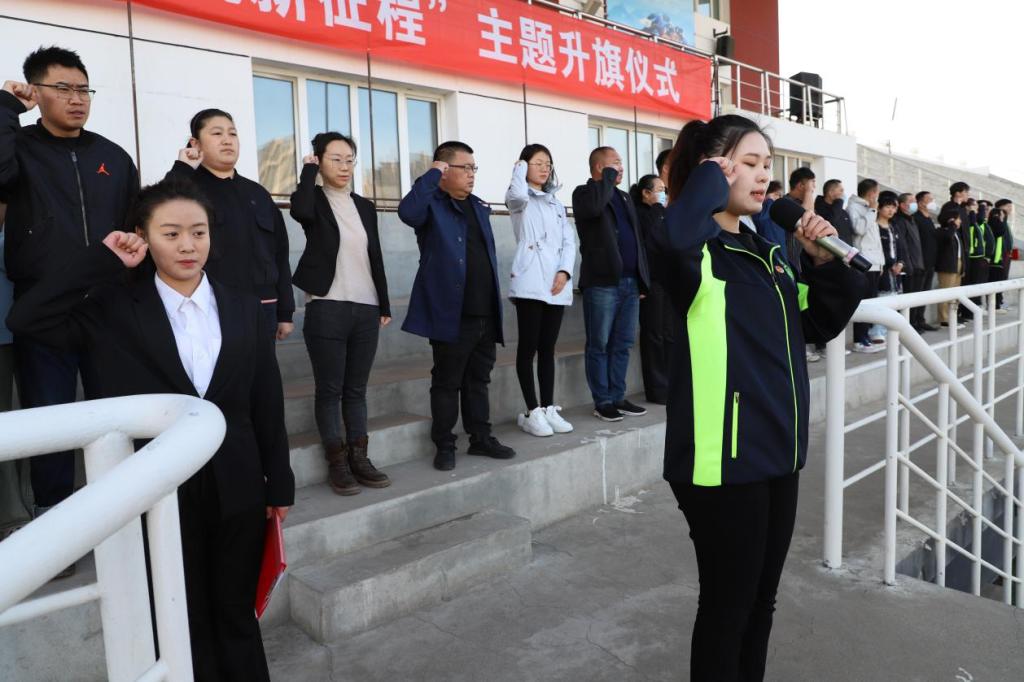教官团成员昂首阔步,意气风发,以饱满的精神状态走向旗台,在庄严的国歌中,五星红旗冉冉升起,全体人员庄严肃立,高唱国歌,面向国旗行注目礼。