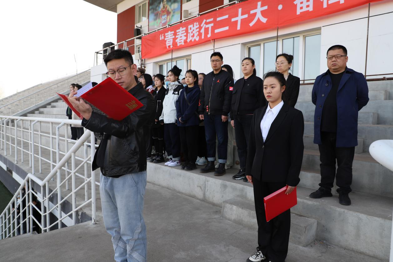 学生代表、校团委组织部部长史源樟带领青年团员重温入团誓词,誓言响彻校园上空,表达了青年团员们不忘初心、牢记使命,坚定理想信念,紧跟时代步伐的心愿。