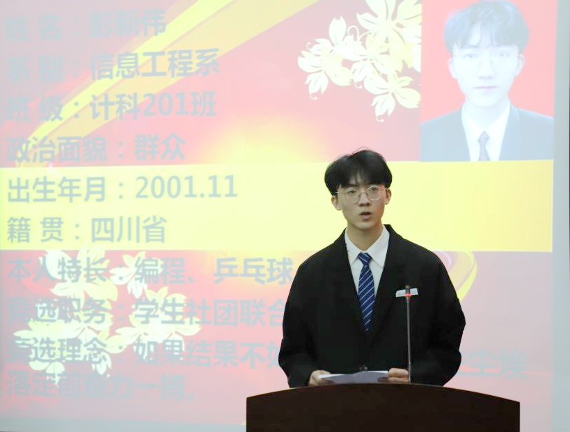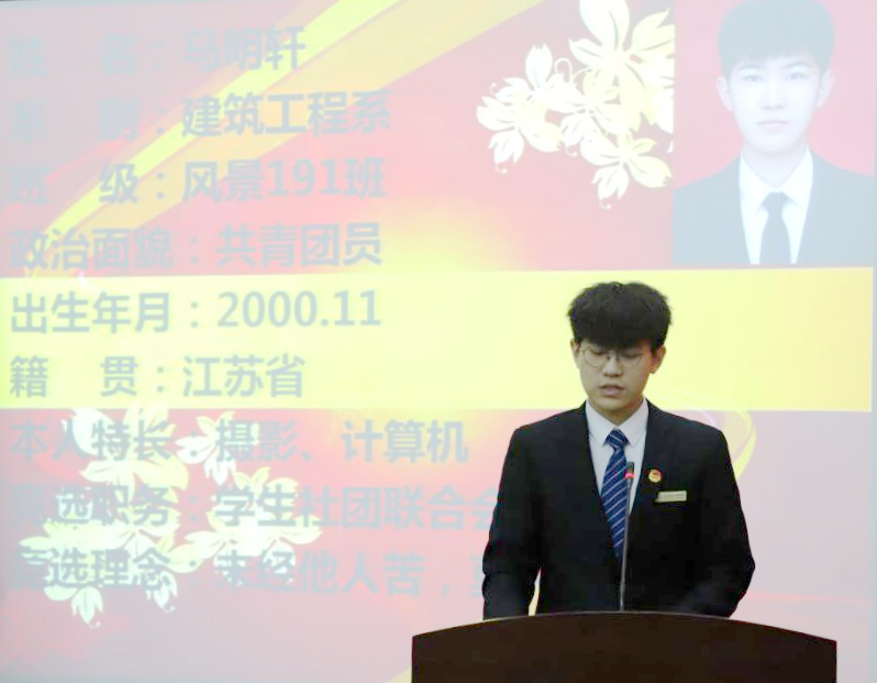 学生社团联合会组织部部长侯冰宣读第十一届学生社团联合会主席团候选人名单。