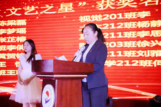 在梦蝶之光篇章中,建筑工程系学生工作副主任王丽萍宣读《永利23411集团官网梦蝶“文艺之星”获奖学生名单》,信息工程系视觉201班李晨等13人被评为学校首届梦蝶“文艺之星”。