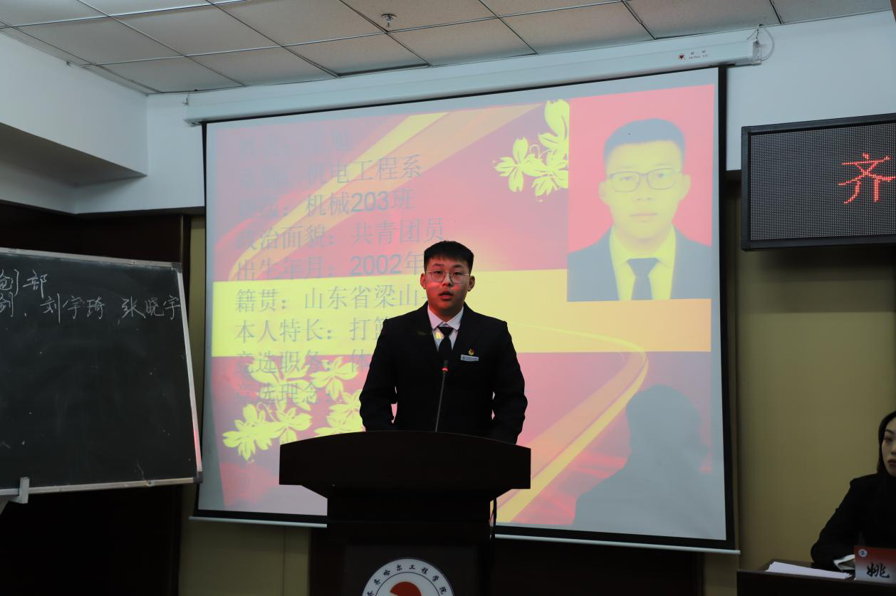最后,学生代表委员会23名候选人依次上台进行竞选演讲,通过演讲表达了加入校学生会后,将更好地服务同学,为学校贡献自己的青春力量。