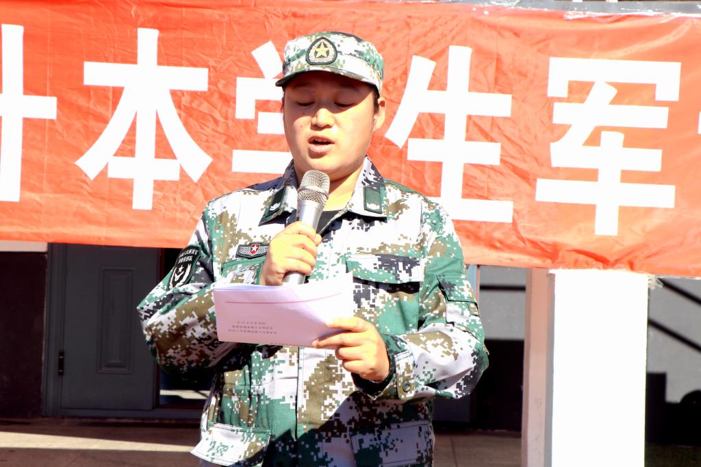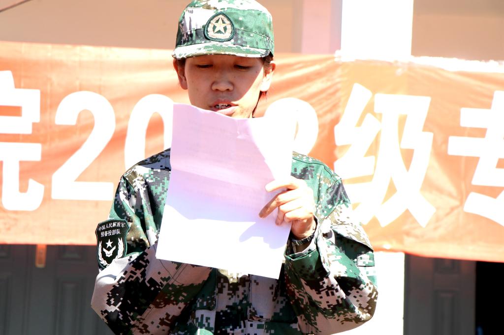 健康与护理系刘佳烨代表2022级专升本学生发言,表示要在军训中一切行动听指挥,像军人那样严格要求自己,努力培养自己吃苦耐劳的品质,为今后的学习、生活打下良好基础。