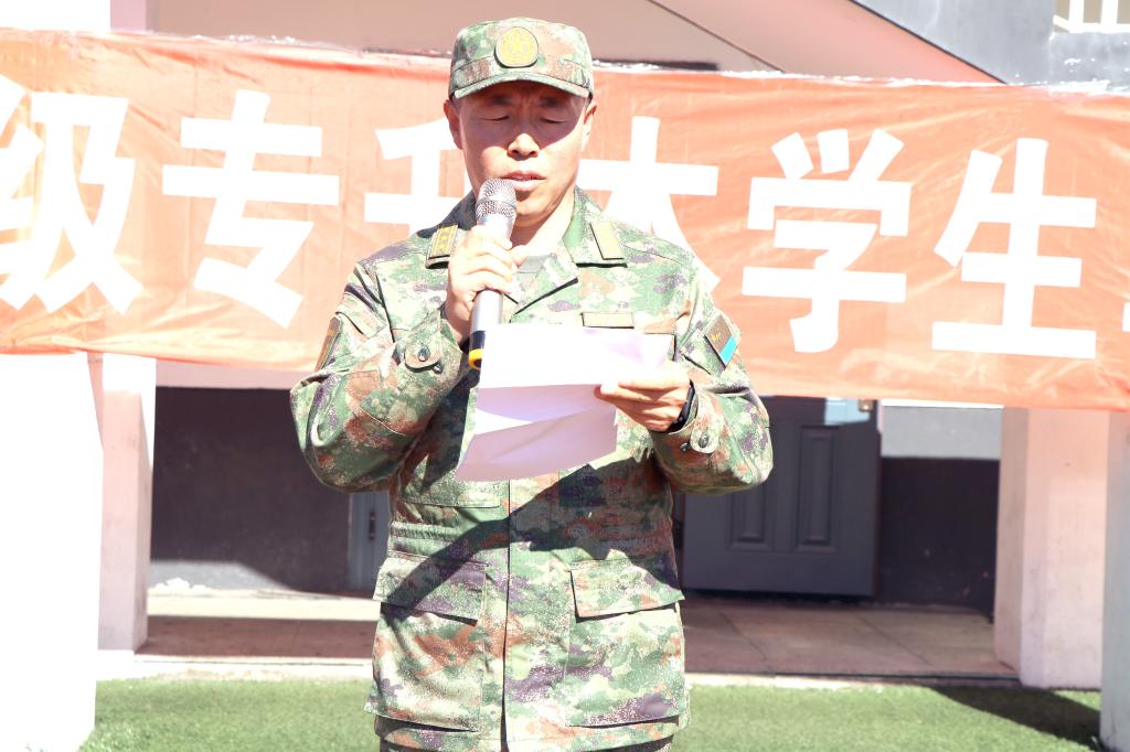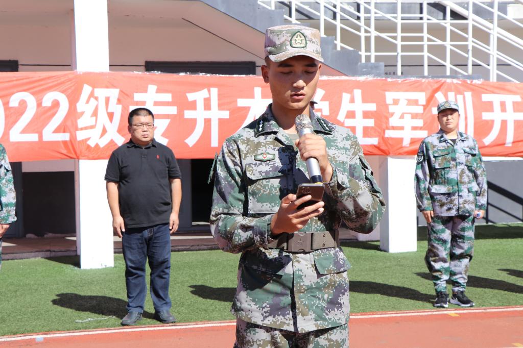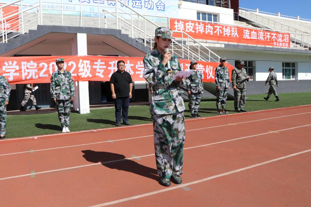 首先,学生工作处负责人乔亚男宣读《2022级专升本学生军训实施方案》,希望新生们通过军事训练,增强国防观念、纪律观念,具有吃苦精神、合作精神和集体主义精神,提高综合素质。
