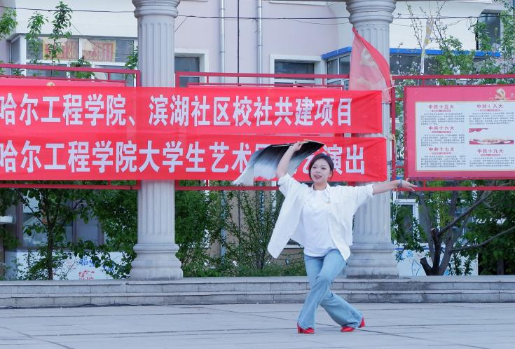 在滨湖社区的活动广场上,艺术团的学生准备了丰富多彩的节目。演出在欢快的开场舞中拉开帷幕,演员们伴随着节奏明快的音乐,展现出了青春的活力和激情,合唱、独唱、器乐独奏、朗诵等精彩节目轮翻上演,充分展示了艺术团学生的优秀才艺。