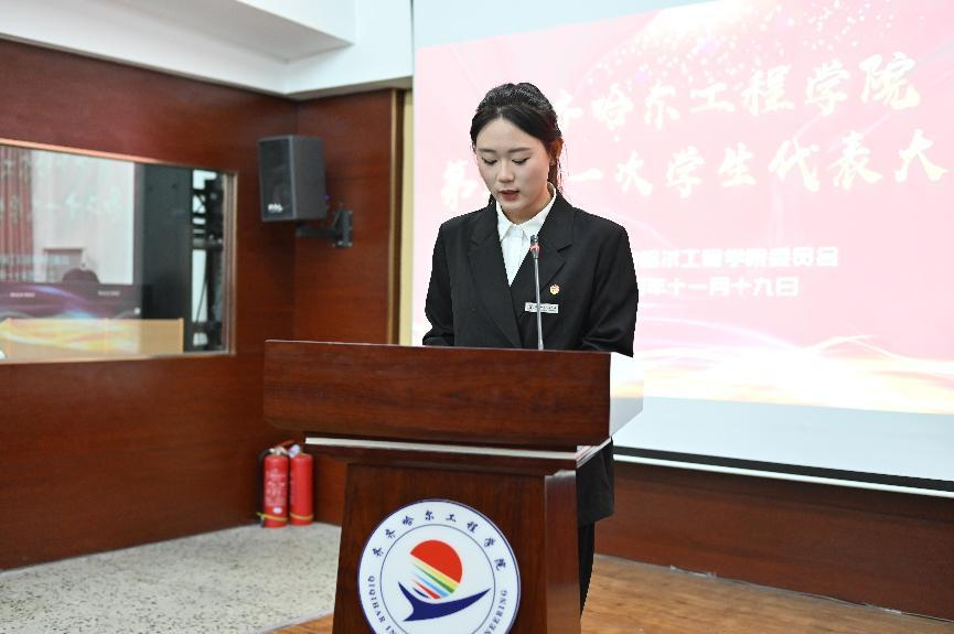 11月19日,学校第二十一次学生代表大会在图书馆501报告厅召开。学校党委副书记、常务副院长陈景鑫出席会议,学生工作处负责人王丽萍、处长助理高士涵、郭慧莹,各系党总支副书记、校学生会、校社联指导教师、各系学生会指导教师及200名学生代表参会。大会由第三十届校学生会学习部部长张启萌主持。