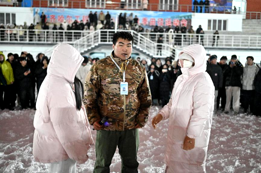在个人赛中,选手们在雪地上展开激烈角逐,他们的坚持和永不服输的精神感染了围观的同学们。