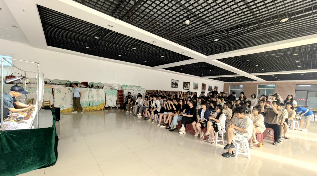 6月24日,在大连写生基地,永利艺术与体育学院邀请国家级皮影戏非遗传承人鄂文武老师,为视觉传达设计专业、动画专业2023级100余名学生带来了一场生动的皮影艺术指导。