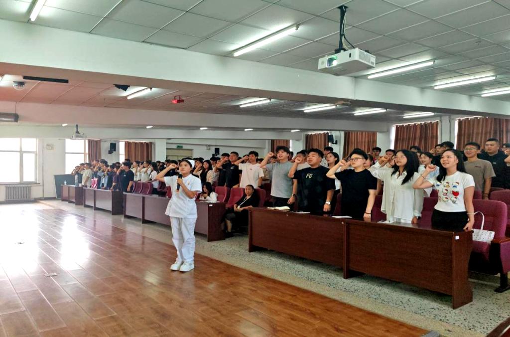 在“学长宣誓”环节,所有学长全体起立,右手握拳,庄严宣誓,承诺以实际行动践行“亮剑”精神,树立良好学长形象。