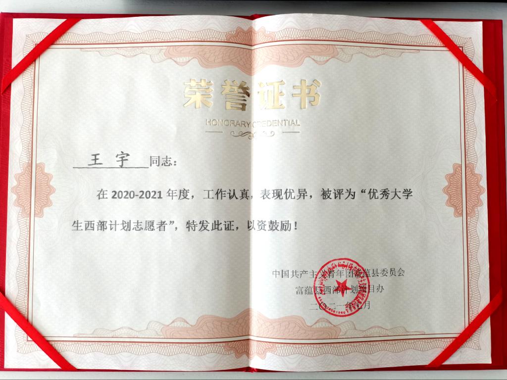 服务期间,他时常提及并感谢自己的母校。在校四年的学习中,他不仅专业基础扎实,志愿服务也从未落下。这为他更好地开展基层服务工作奠定了基础。因为语言不通是工作开展的最大障碍,他自创了一套沟通方法,了解群众所想所需,帮助群众解决生活中的实际困难。在一次入户走访中,一位阿姨因社保系统问题一直交不上社保款,这使得她很焦急。在得知情况后,王宇一边安抚阿姨,一边联系相关部门,积极去解决问题。他说:“作为一名基层工作者,应具备为群众服务的思想觉悟,群众的事都是大事,自己的事都是小事。”